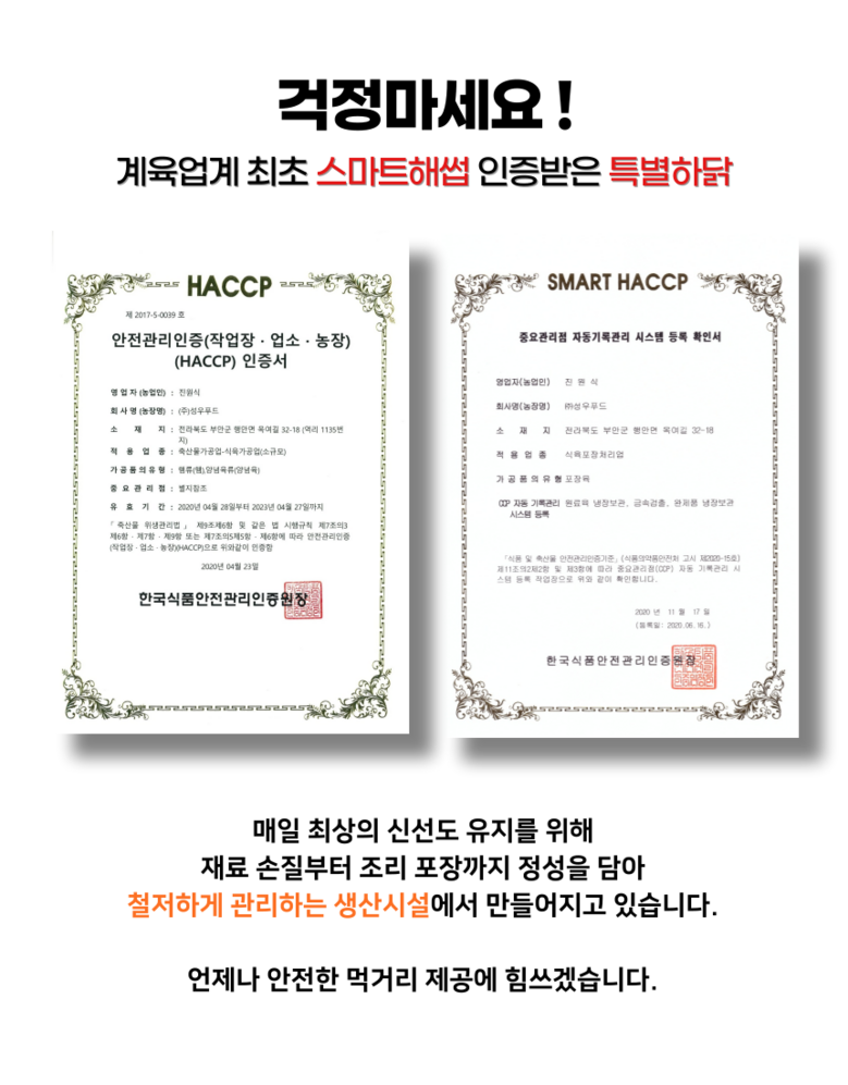 상호/대표자 | 진가계 / 진광석 | 사업장 소재지 | 전북특별자치도 부안군 행안면 옥여길 32-18 (주)성우푸드 |