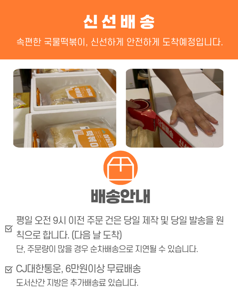 | 배송방법 | 순차배송 | 배송비 | 무료배송 · 도서산간 추가 배송비 - 제주 지역: 7,000원 - 도서산간 지역: 4,000원 |