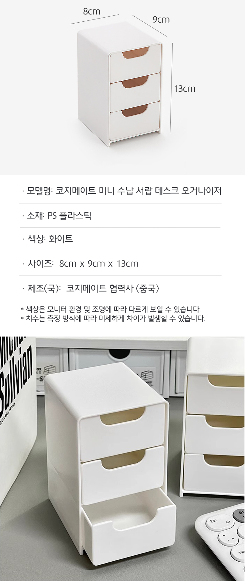| 품명 및 모델명 | 코지메이트 미니 수납 서랍 데스크 오거나이저 | 인증/허가 사항 | 해당 없음 |