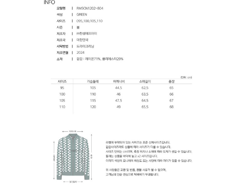| 제조국 | 상품 상세페이지 참조 | 세탁방법 및 취급시 주의사항 | 상품 상세페이지 참조 |