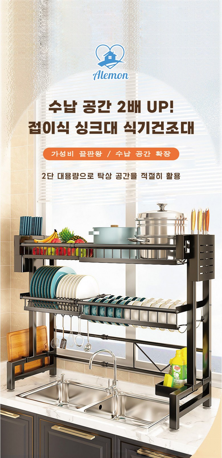 | 품명 및 모델명 | Alemon 너비조절 식기 건조대 세트 블랙 식기건조대2단 식기건조대 | 재질 | 탄소강 |