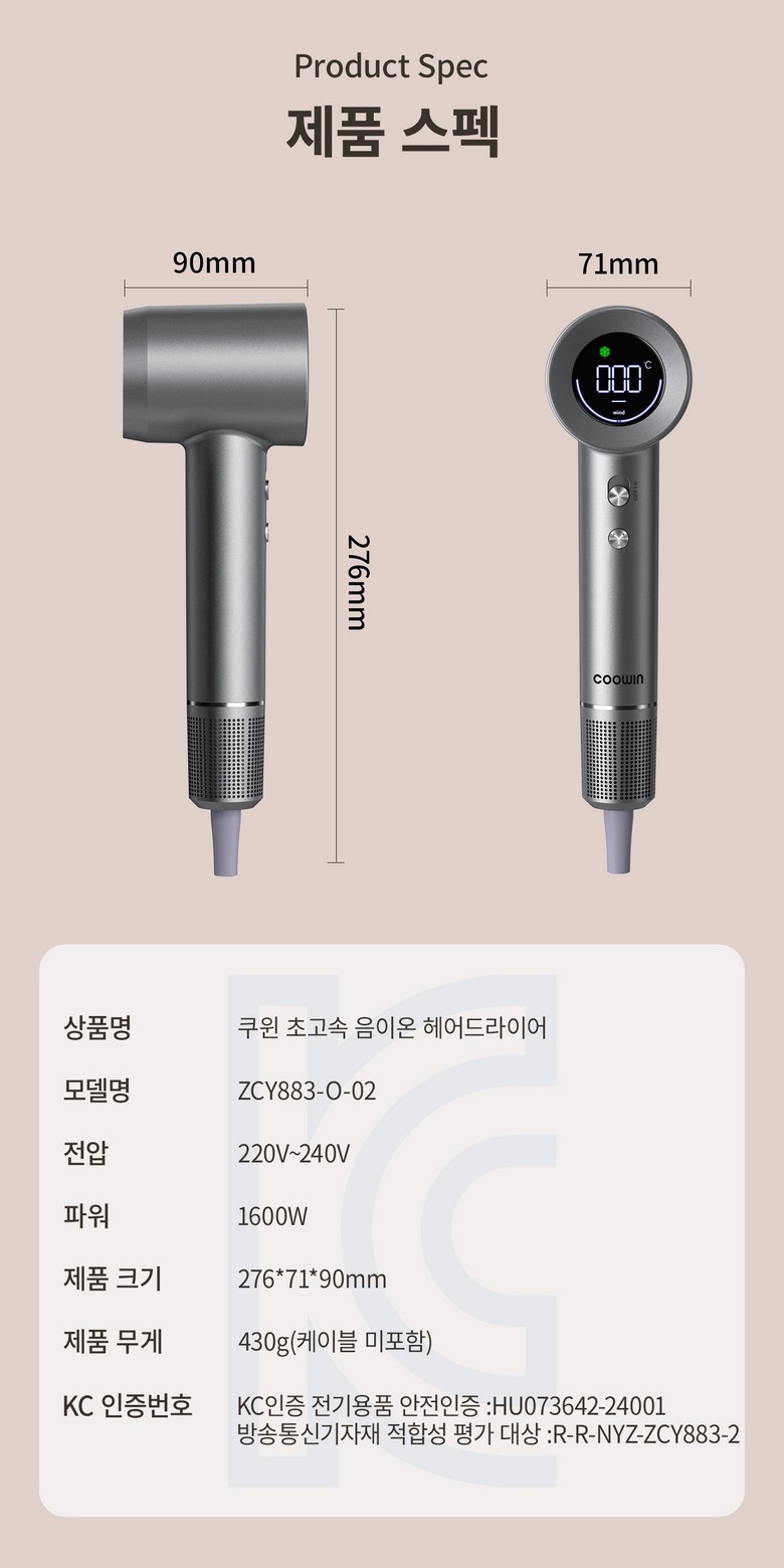 | 품명 및 모델명 | Coowin쿠윈 ZCY883-O-02 | KC 인증정보 | 안전인증: HU073642-24001KC: R-R-NYZ-ZCY883-2 |