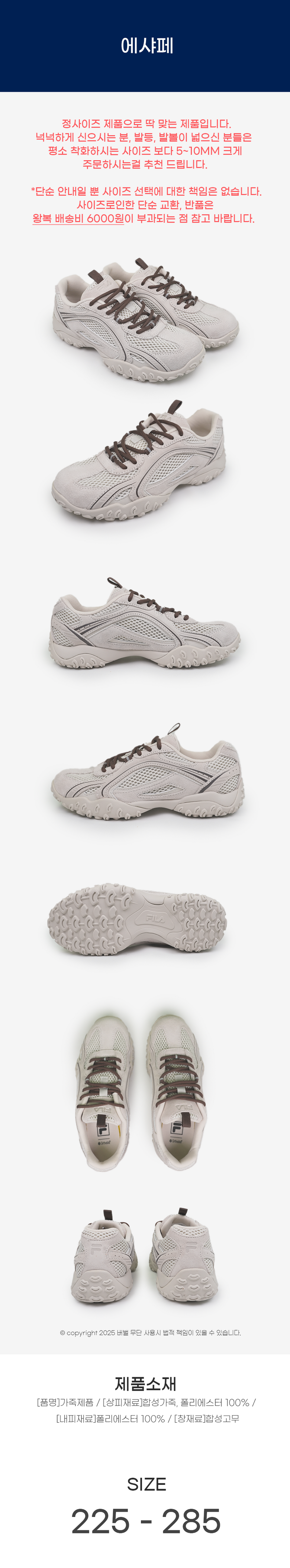 | 제품의 주소재(운동화인 경우에는 겉감,안감을 구분하여 표시) | 상품 상세페이지 참조 | 색상 | 상품 상세페이지 참조 |