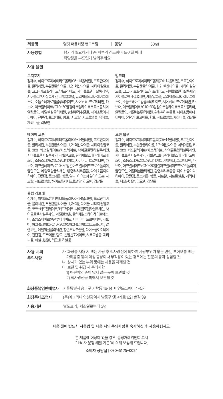 | 화장품제조업자, 화장품책임판매업자 및 맞춤형화장품판매업자 | 상품 상세페이지 참조 | 제조국 | 대한민국 |
