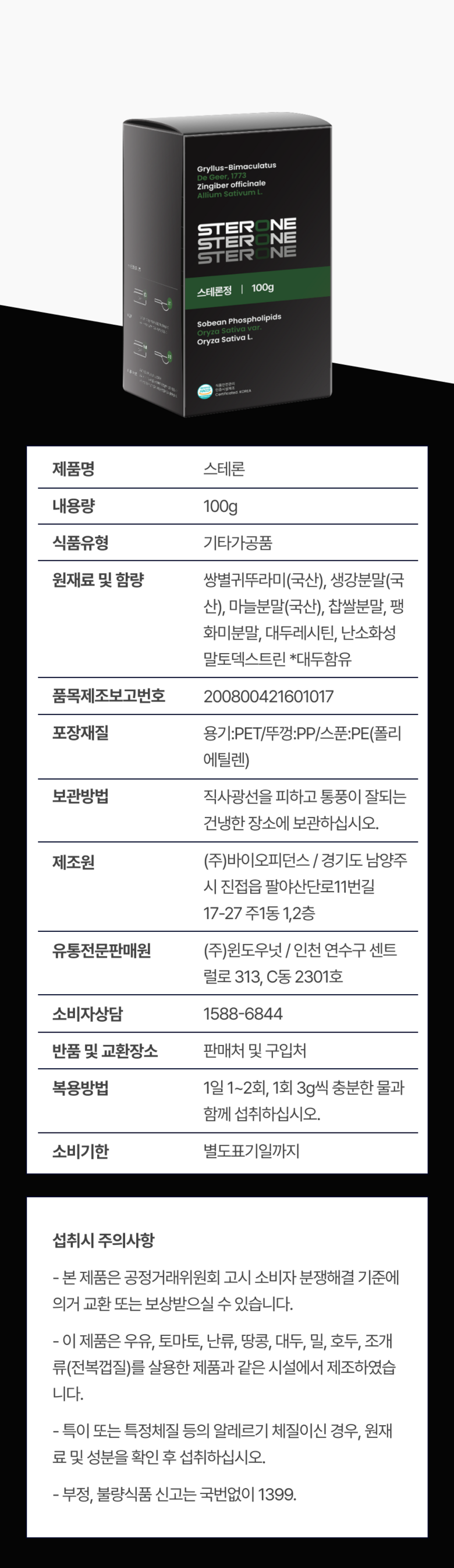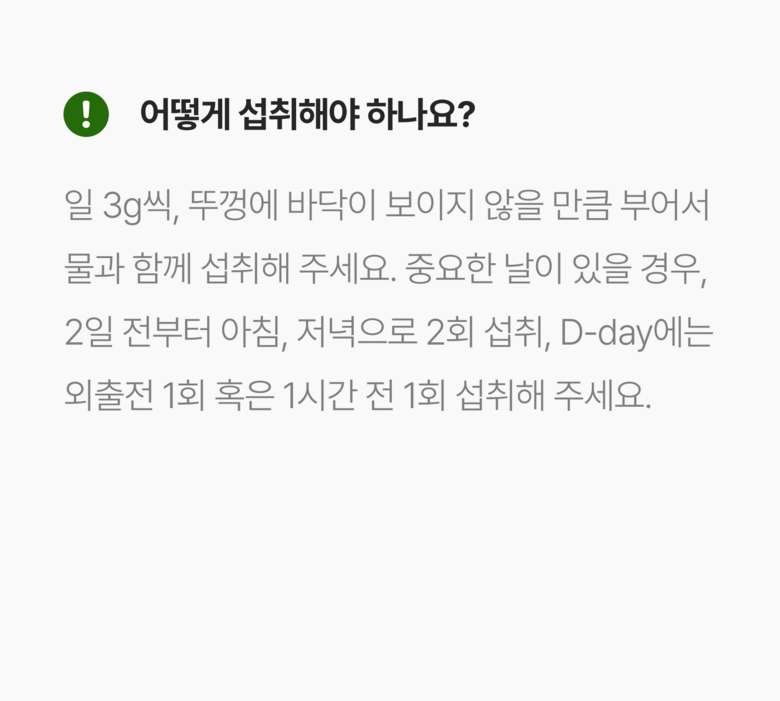 | 제조연월일, 유통기한 또는 품질유지기한 | 2027년 2월 5일까지 | 포장단위별 용량(중량), 수량 | 1박스 100g, 총 30일분 |