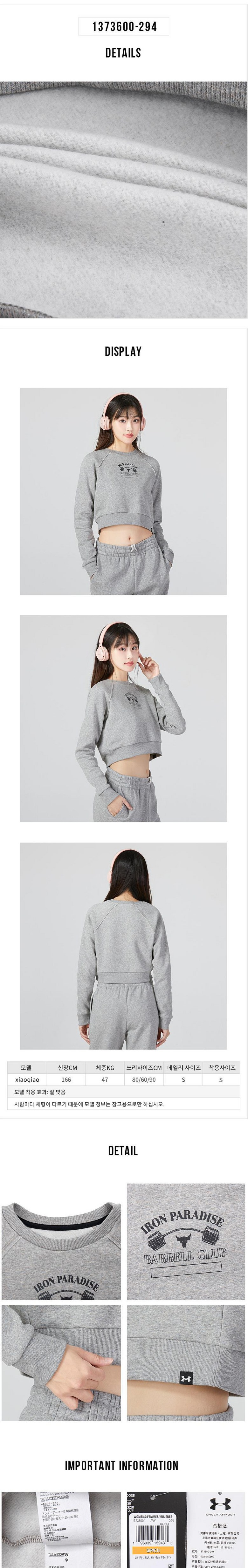 언더아머 여성 UA PJT RCK HM 짐 FLC CRW 맨투맨 1373600-294