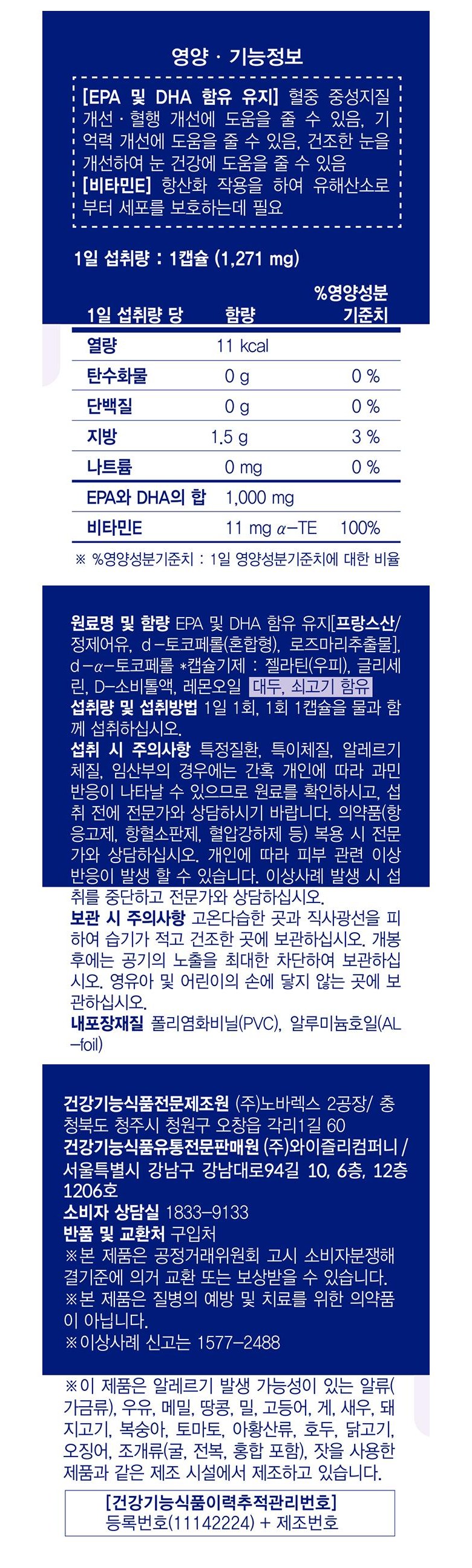 | 원료명 및 함량 | 상품 상세페이지 참조 | 영양정보 | 상품 상세페이지 참조 |