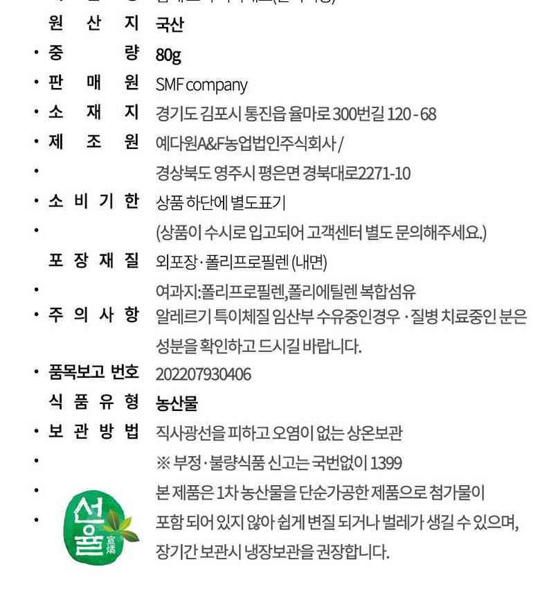 | 포장단위별 내용물의 용량(중량), 수량 | 컨텐츠 참조 | 원재료명 및 함량 | 컨텐츠 참조 |