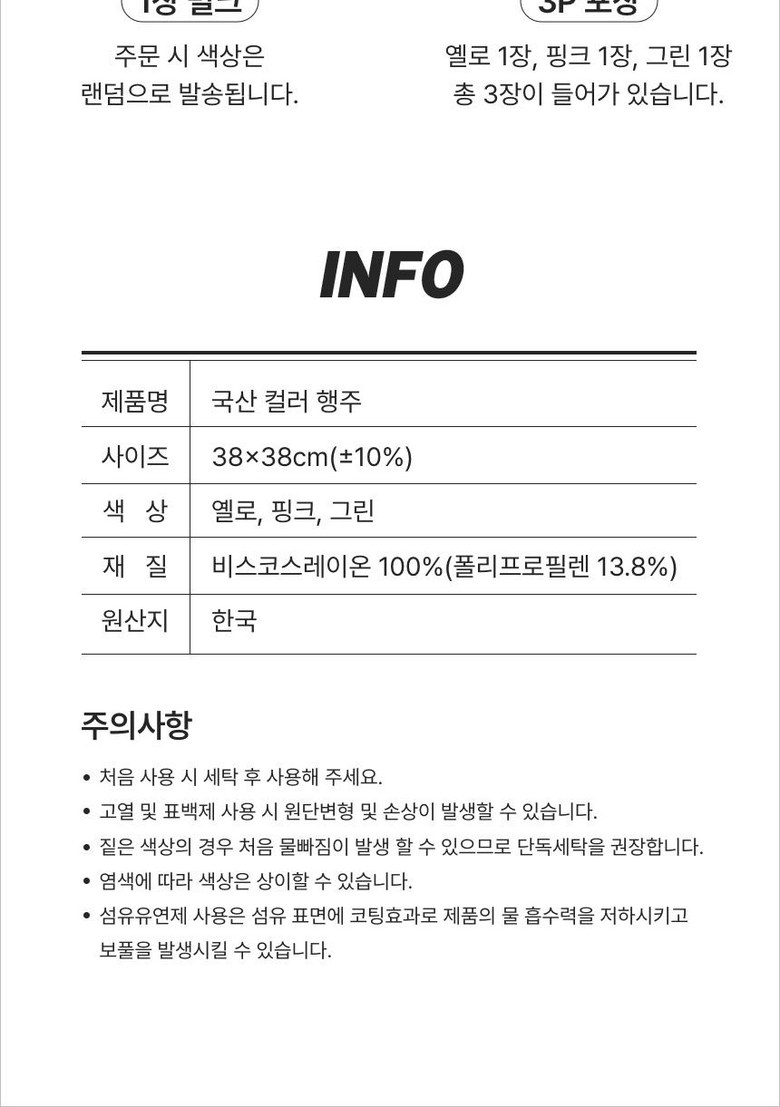 kimspp 국산 부직포 칼라행주(38x38cm) 주방행주 판촉 행사 홍보용