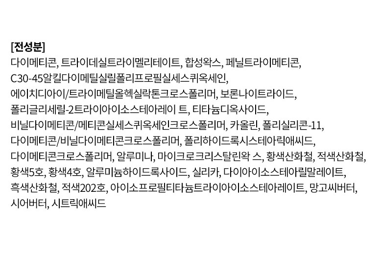 | 화장품제조업자, 화장품책임판매업자 및 맞춤형화장품판매업자 | 컨텐츠 참조 | 제조국 | 대한민국 |