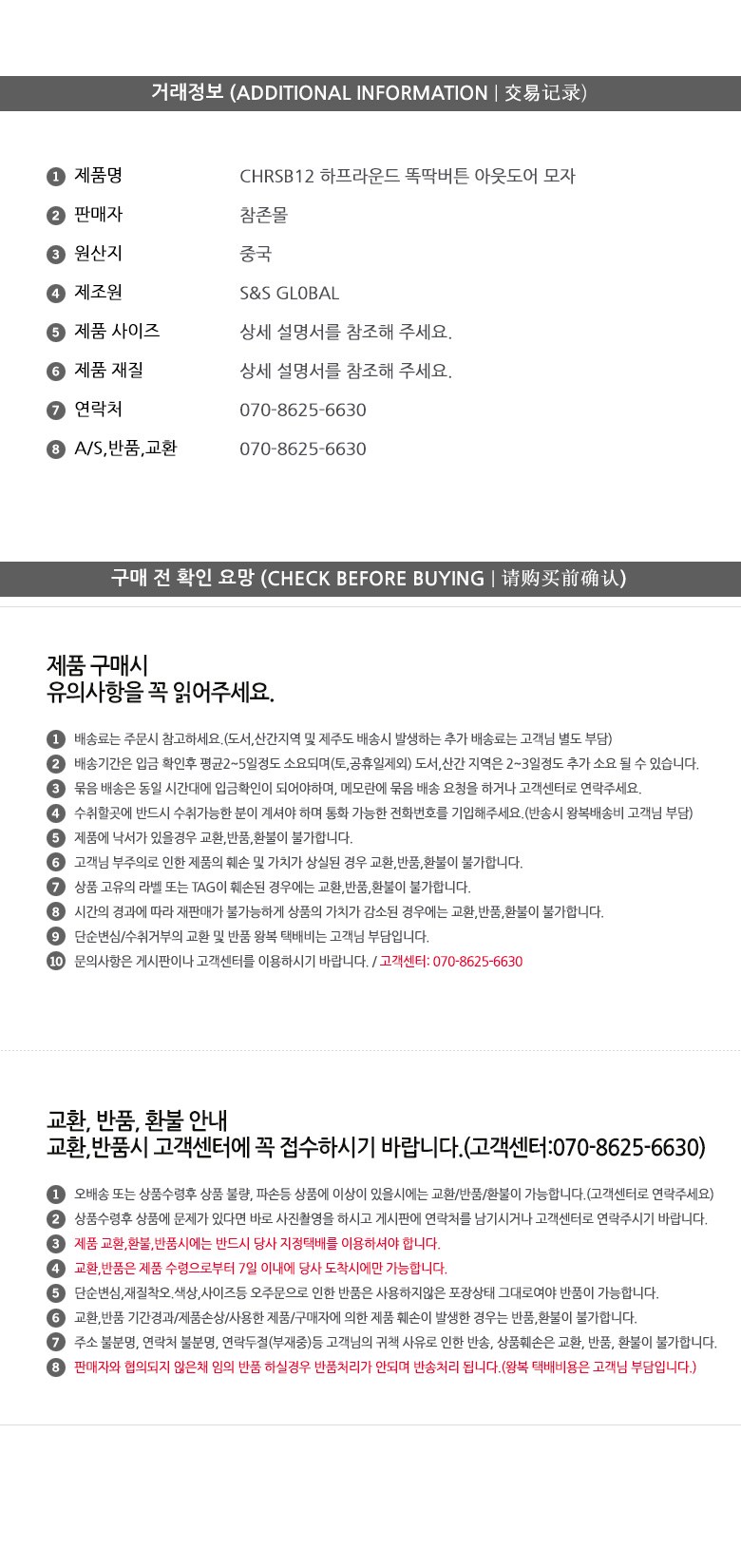 - ㆍ교환/반품에 관한 일반적인 사항은 판매자가 제시사항보다 관계법령이 우선합니다.