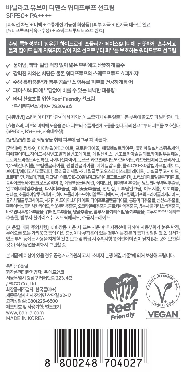 | 화장품제조업자, 화장품책임판매업자 및 맞춤형화장품판매업자 | 컨텐츠 참조 | 제조국 | 대한민국 |