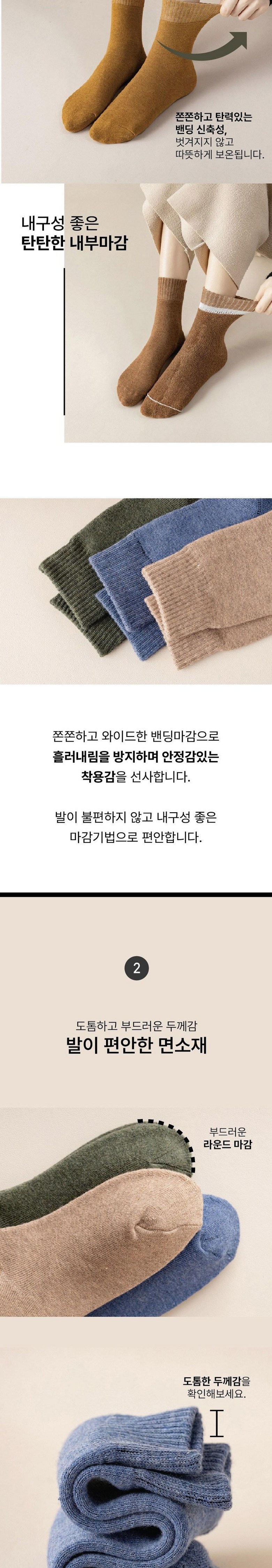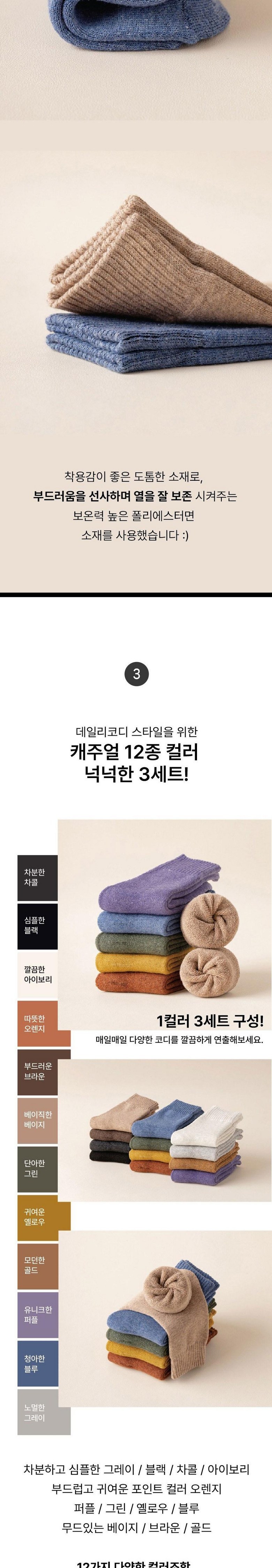 헨센 겨울 무지 보온 중목양말 데일리 두툼 양말 3켤레 세트