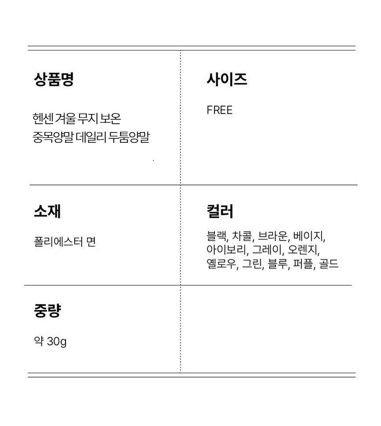 | 종류 | 양말 | 소재 | 컨텐츠 참조 |