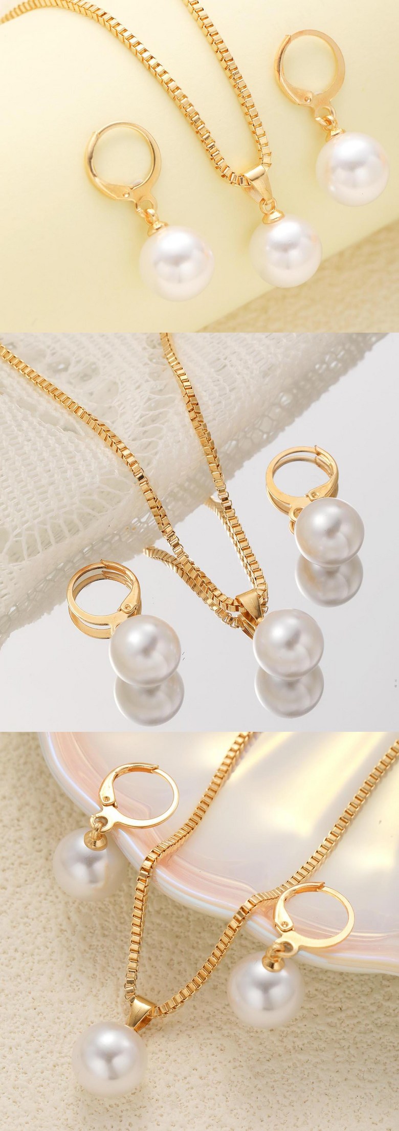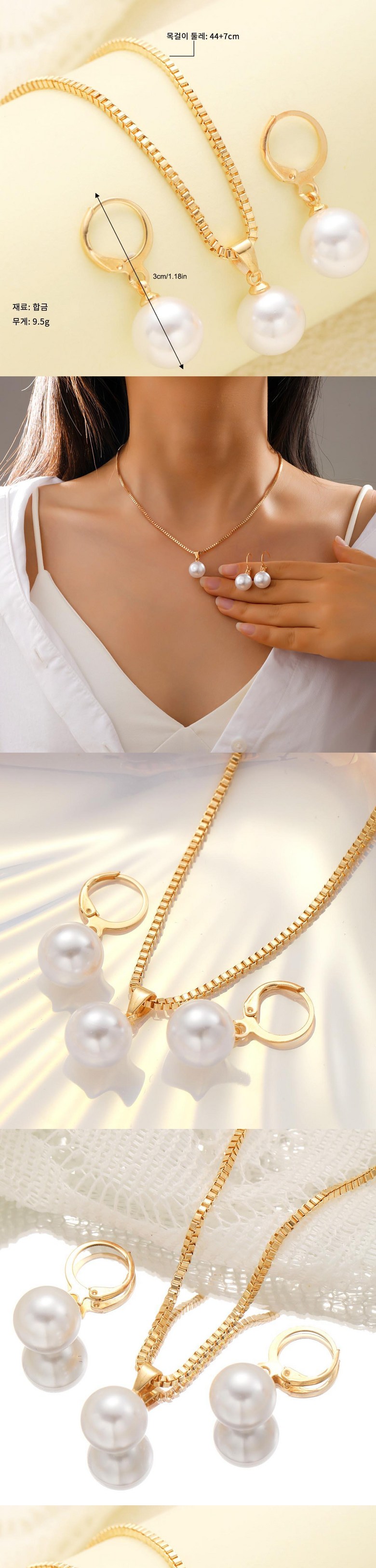 RoseAria 여성 진주 목걸이 + 원터치 귀걸이 세트