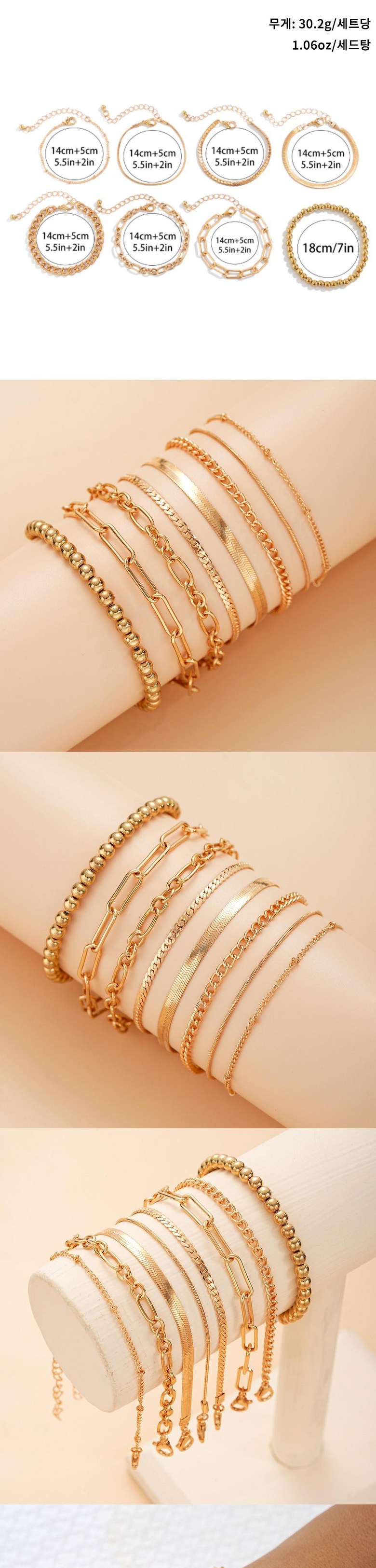 | 치수 | 체인 팔찌 19cm + 비즈 팔찌 18cm | 착용 시 주의사항 | 상품 상세페이지 참조 |