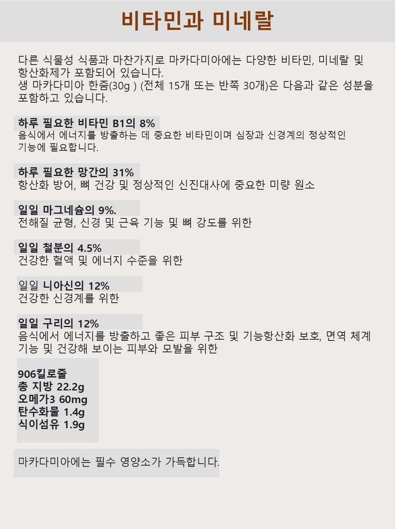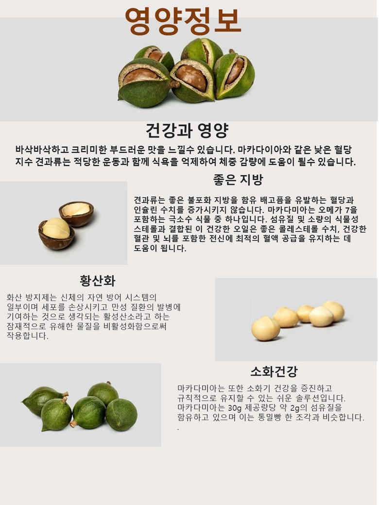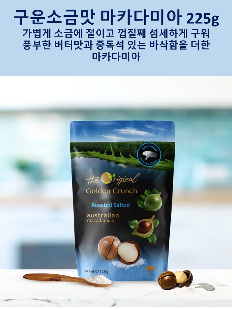 | 품목 또는 명칭 | 호주 통마카다미아 구운소금 225g | 포장단위별 내용물의 용량(중량),수량,크기 | 225g |