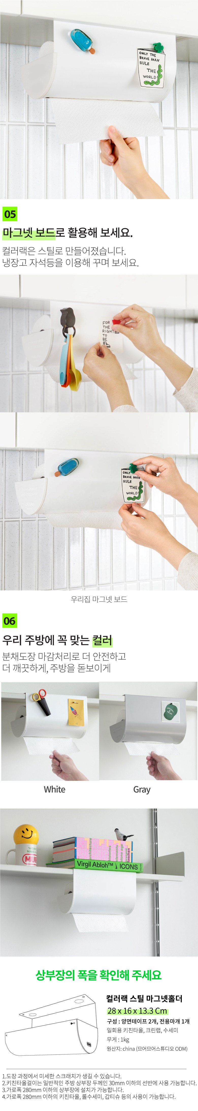 | 품명 및 모델명 | 므어므어 마그넷 홀더 컬러랙 스틸 키친타올걸이 | 재질 | 스틸 |
