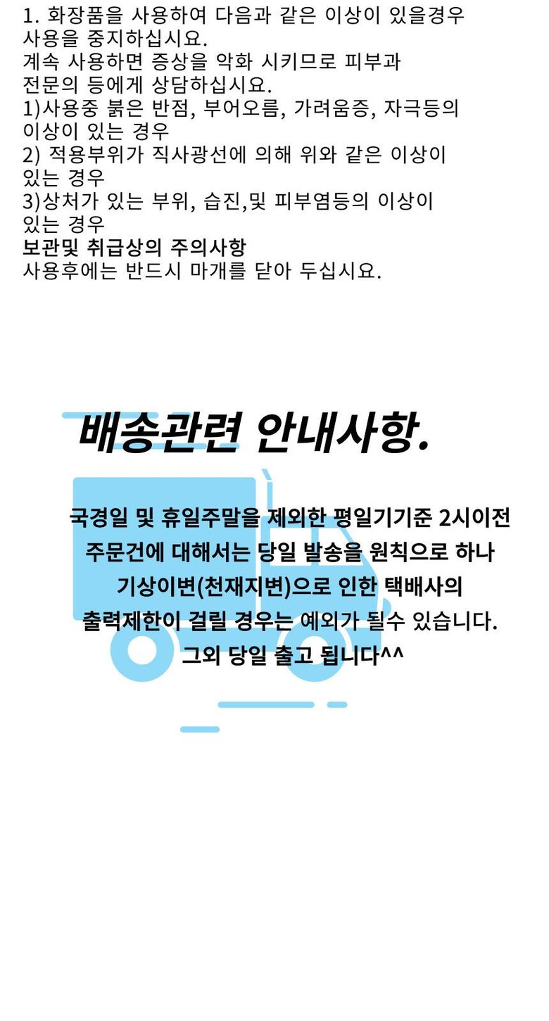 - ㆍ모니터 해상도의 차이로 인해 색상이나 이미지가 실제와 달라, 고객이 단순 변심으로 교환/반품을 무료로 요청하는 경우