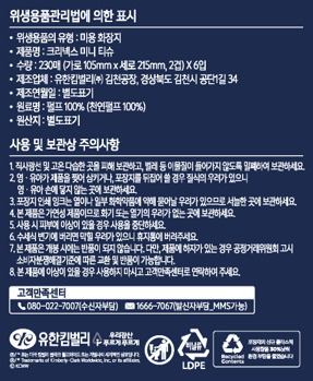 | 품명 및 모델명 | 리뉴얼 전, 후 : 크리넥스 미니 티슈 | 인증/허가 사항 | 위생용품 |