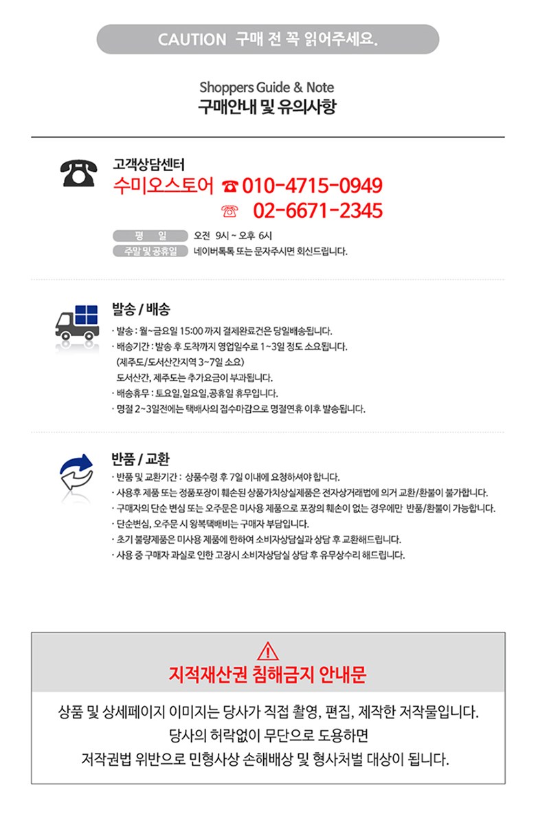- ㆍ교환/반품에 관한 일반적인 사항은 판매자가 제시사항보다 관계법령이 우선합니다.