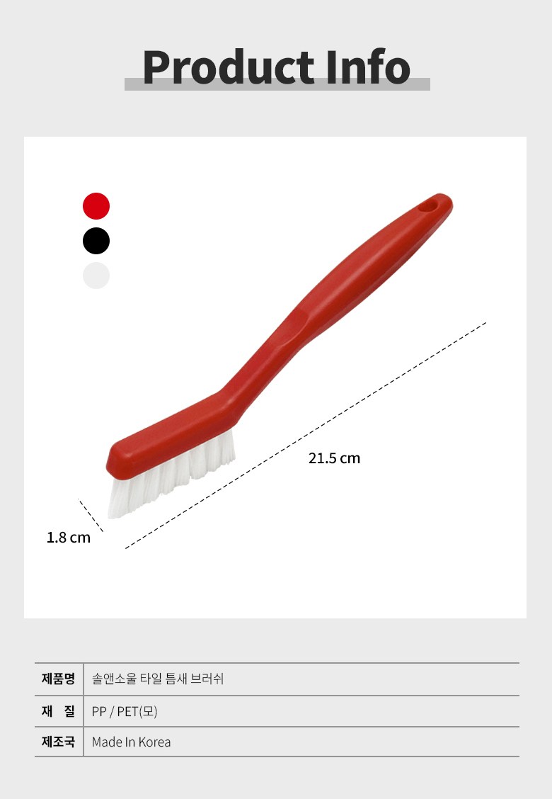 | 품명 및 모델명 | 솔앤소울 타일 틈새브러쉬 청소솔 (화이트) | 인증/허가 사항 | 해당없음 |