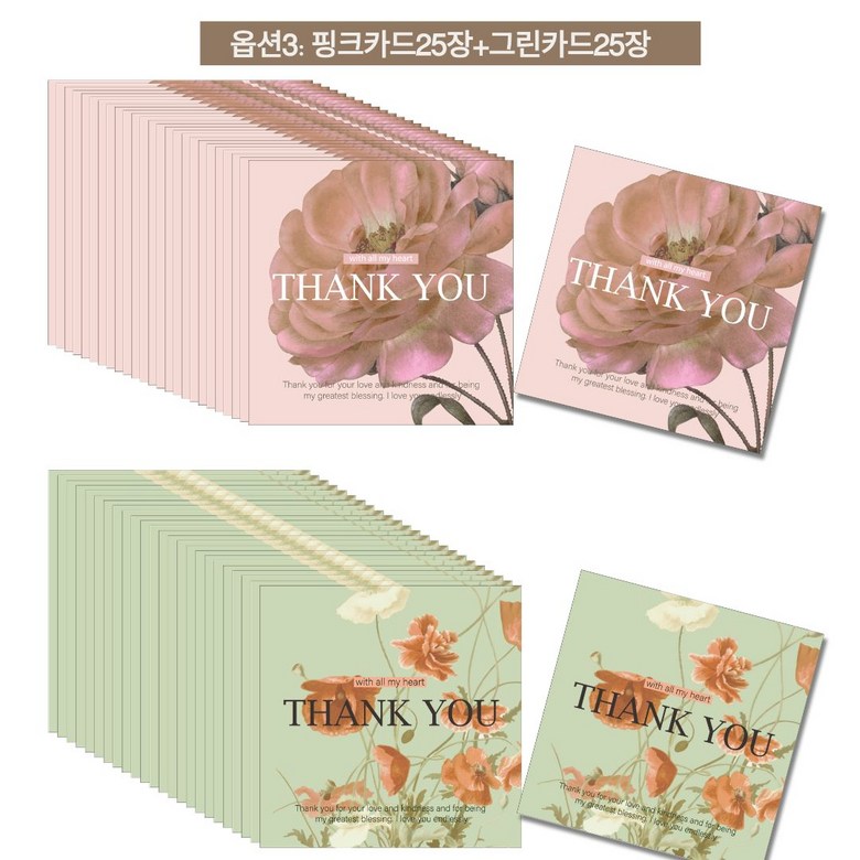 감사카드50장 메세지카드 미니카드 미니엽서 편지지 선물포장 소량엽서 제작카드