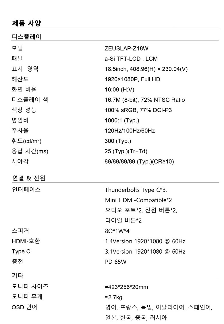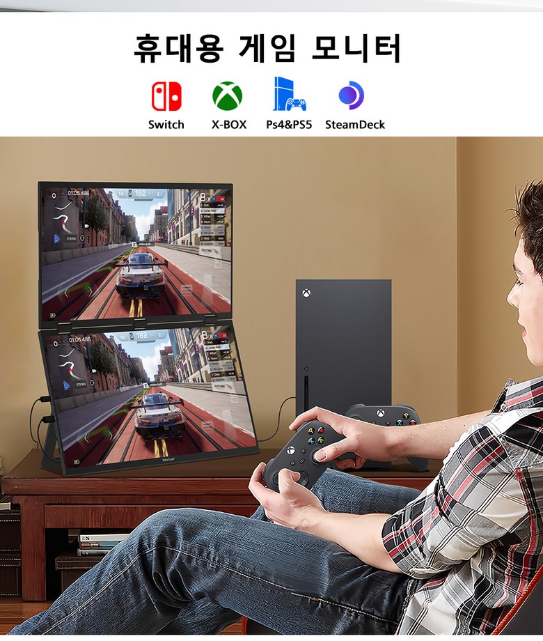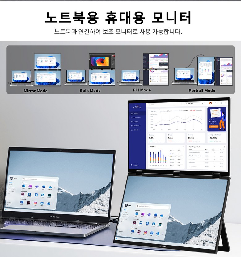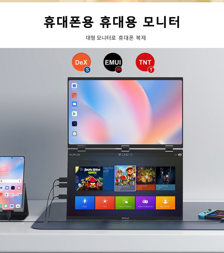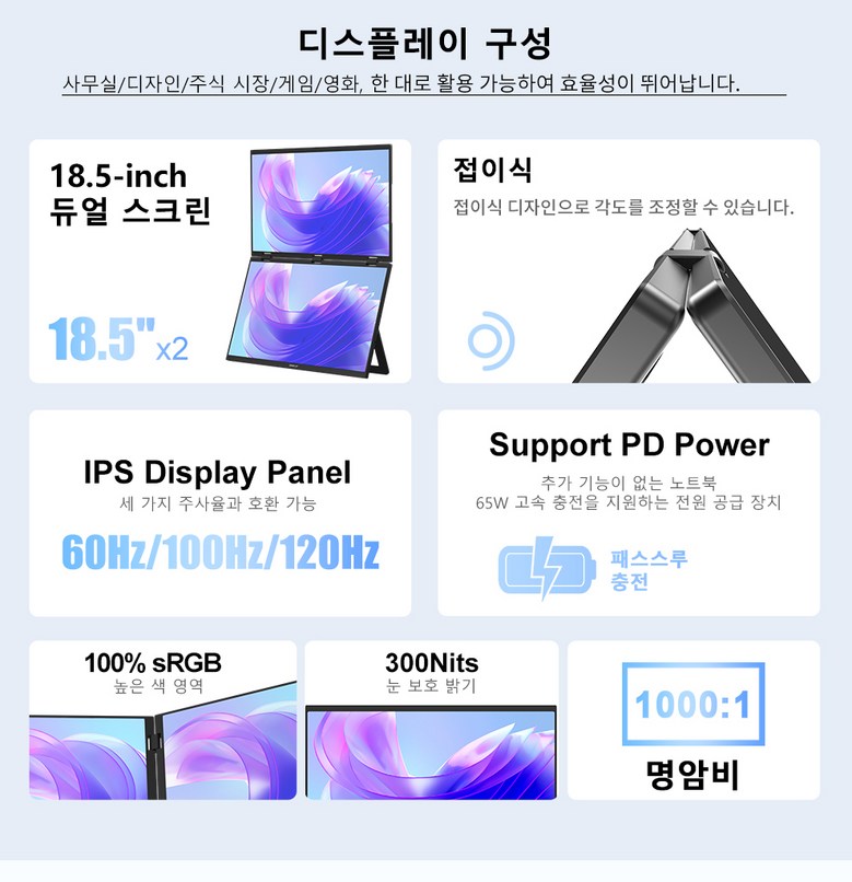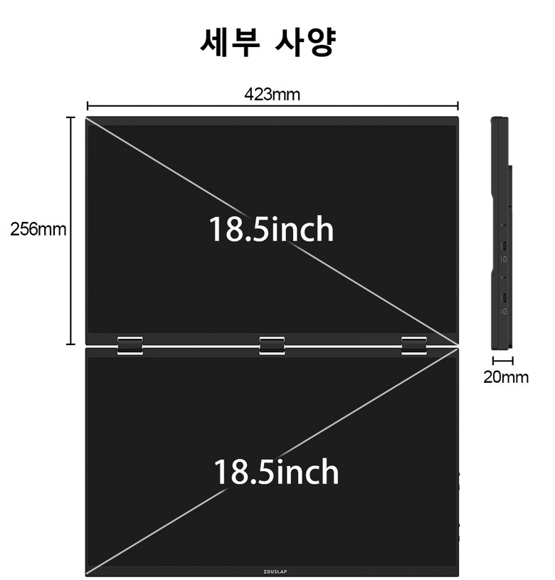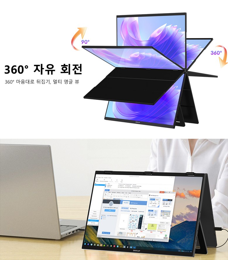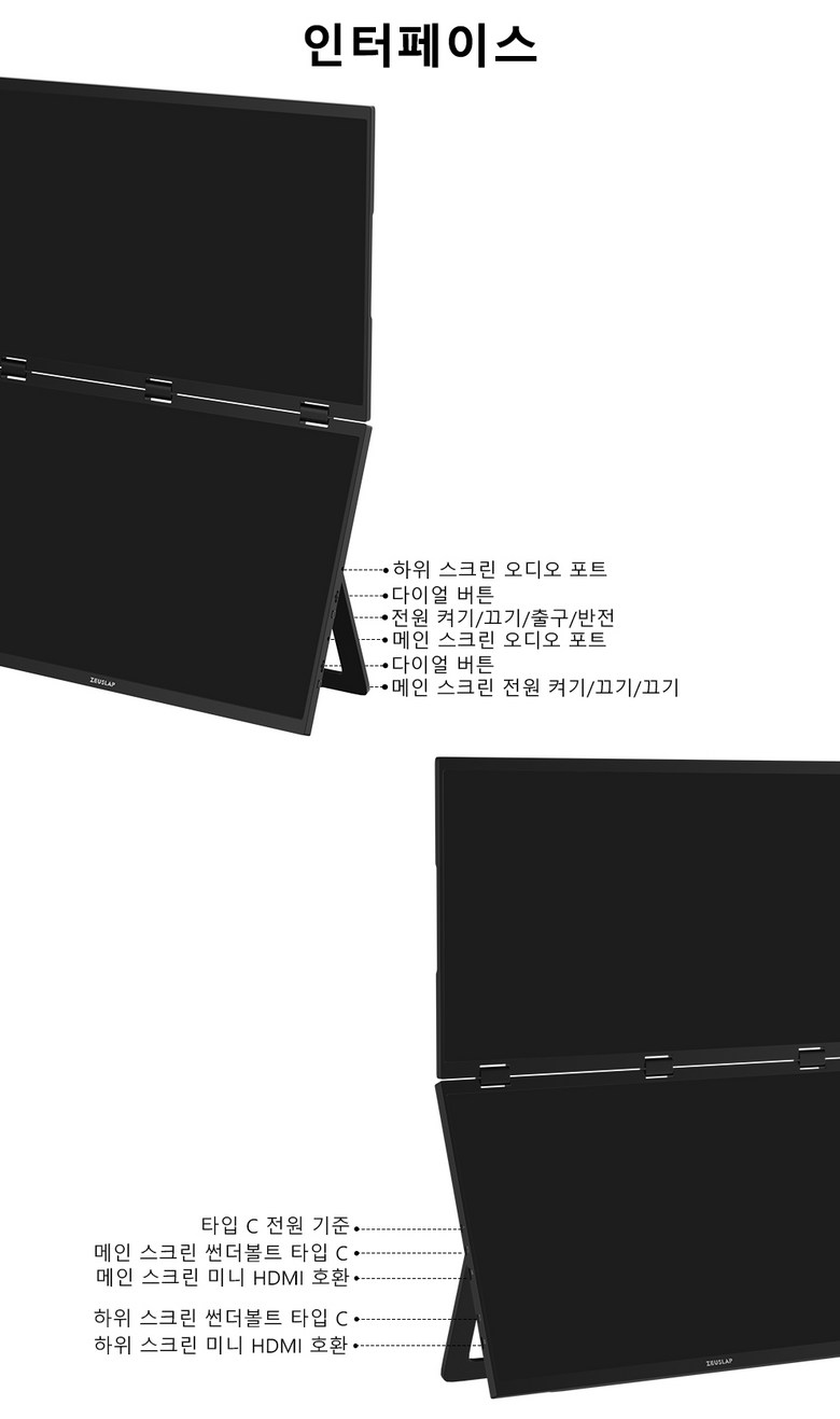 ✔ 제우스랩 올인원 듀얼 스크린 접이식 모니터 18.5 인치