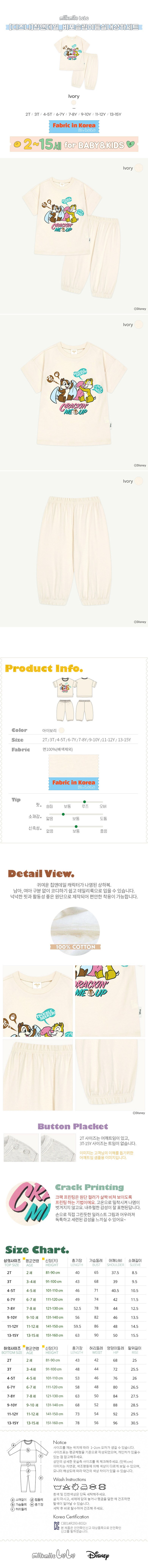 | 품명 및 모델명 | 밀크마일로로 [디즈니]칩앤데일 비포슬립여름실내상하세트 아이보리 3T | KC 인증정보 | CB014R293-8032r |
