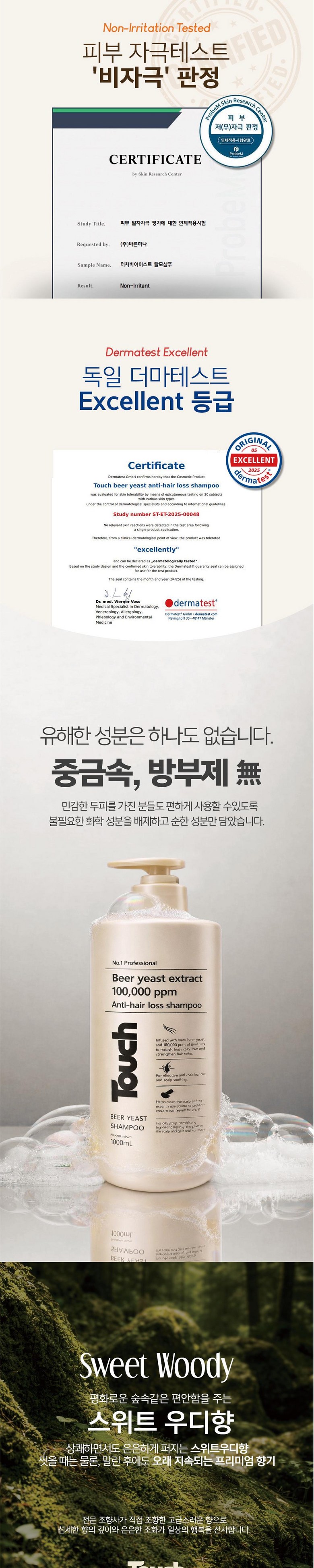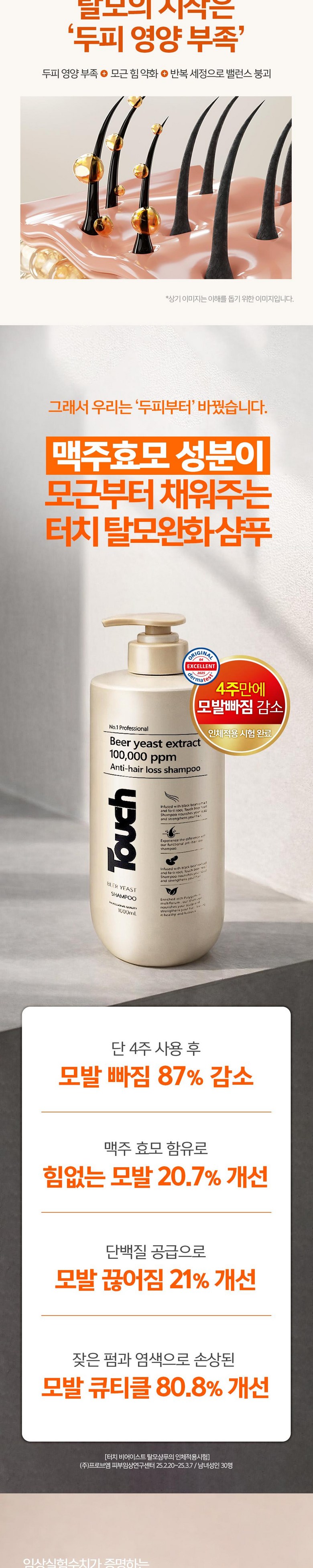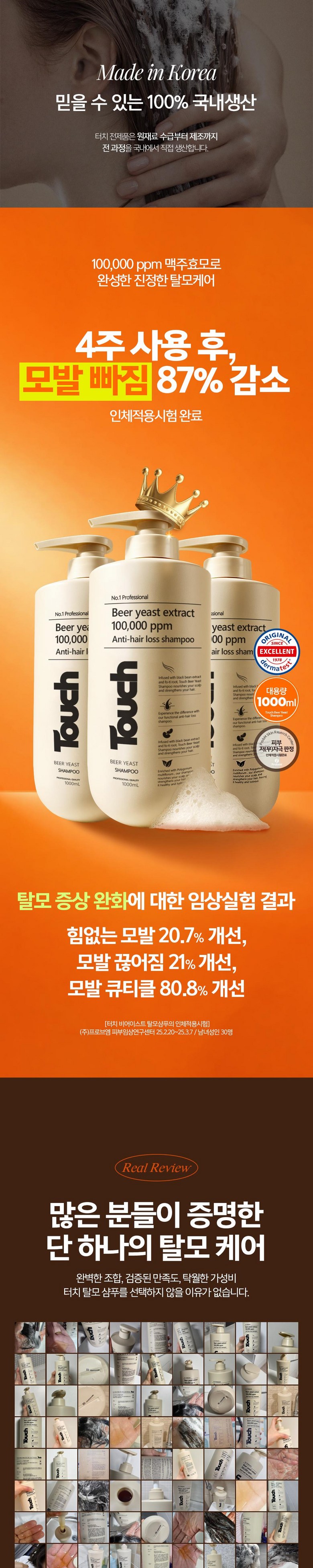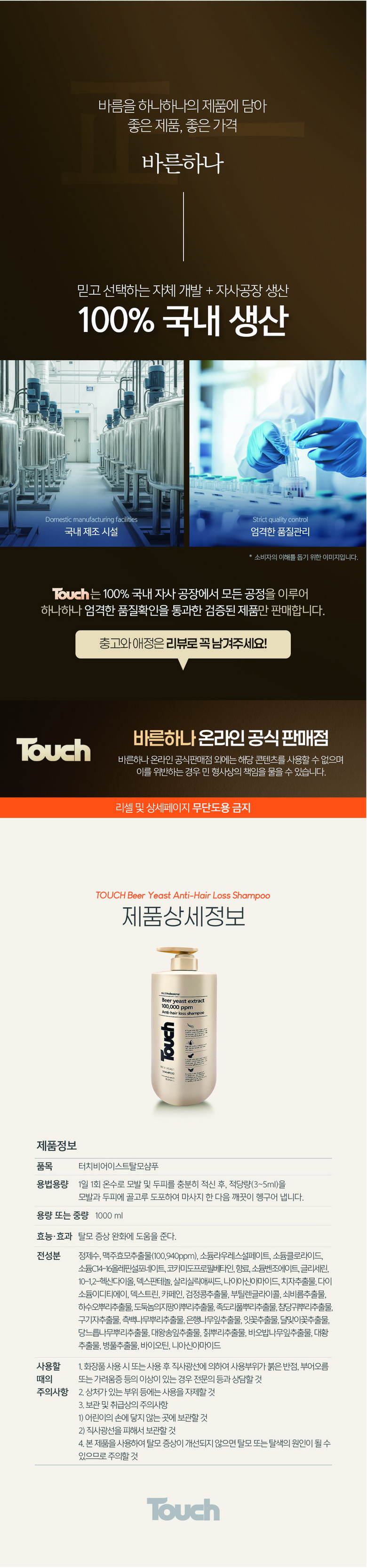 | 품명 및 모델명 | 터치 맥주효모 비어 이스트 탈모완화 샴푸 | 인증/허가 사항 | 상품 상세페이지 참조 |