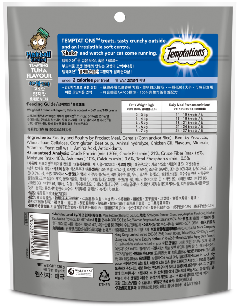 | 품명 및 모델명 | 템테이션 헤어볼 컨트롤 | 인증/허가 사항 | 사료관리법에 따른 성분등록번호 : 컨텐츠 참조 |