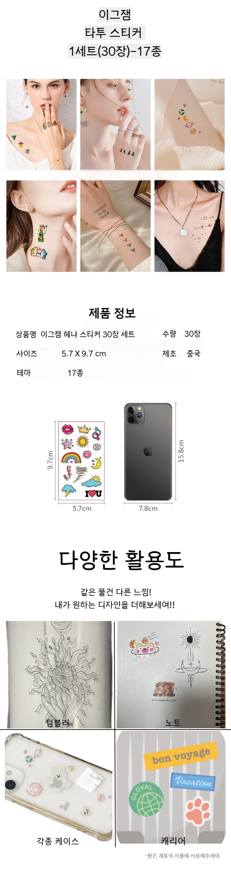 | 품명 및 모델명 | 이그잼 타투 스티커 | 인증/허가 사항 | 해당 사항 없습니다 |