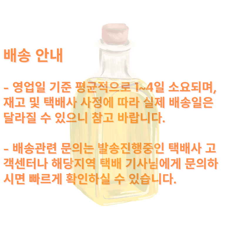 | 배송기간 | ㆍ도서산간 지역 등은 배송에 3-5일이 더 소요될 수 있습니다. - 천재지변, 물량 수급 변동 등 예외적인 사유 발생 시, 다소 지연될 수 있는 점 양해 부탁드립니다. | ||