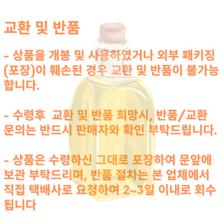 - ㆍ교환/반품에 관한 일반적인 사항은 판매자가 제시사항보다 관계법령이 우선합니다.