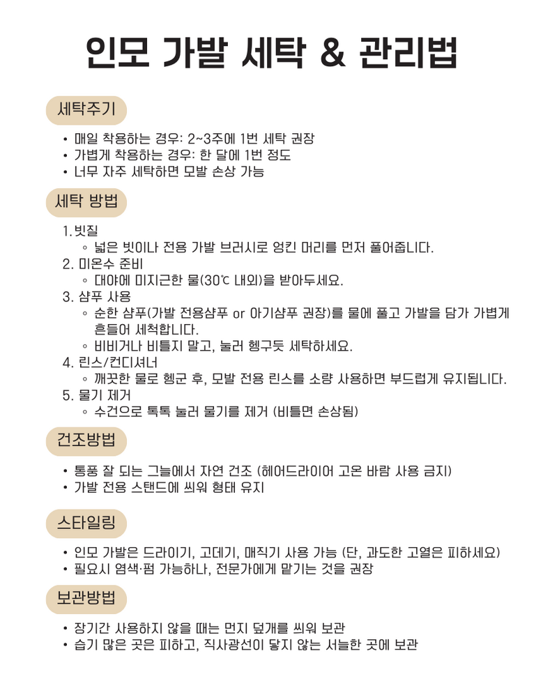 - 종류: 붙임머리/헤어피스/부분가발