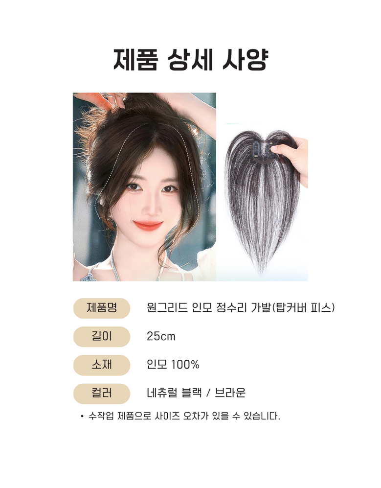 | 품명 및 모델명 | 원그리드 인모 100% 정수리 부분 가발 | 인증/허가 사항 | 해당없음 |