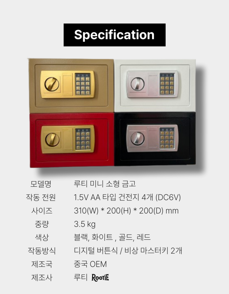 | 품명 및 모델명 | 루티 미니 소형 금고 | 인증/허가 사항 | 해당없음 |