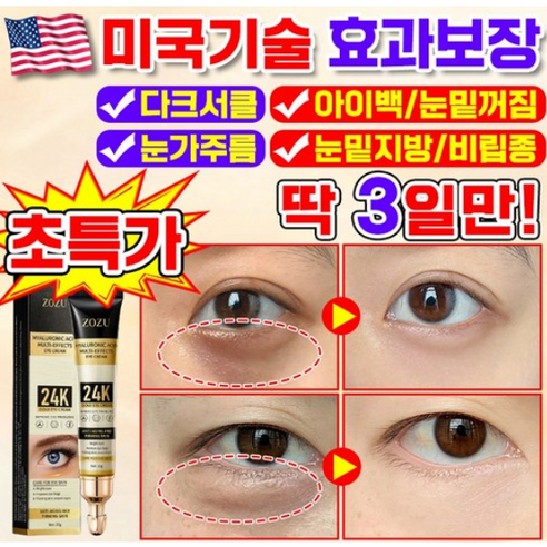 [국내배송] 미국 1/1+1/2+2 24K 골드 히알루론산 아이크림 아이팔트 아이백 크림 눈밑꺼짐 다크서클 비립종 제거 크림 눈밑 지방제거 눈가 주름개선 리프팅 아이케어 포장증정