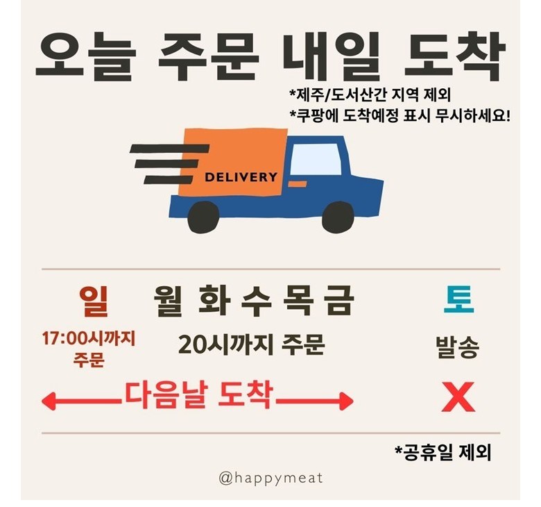 | 배송방법 | 신선/냉장/냉동 | 배송비 | 무료배송 · 도서산간 추가 배송비 - 제주 지역: 3,000원 - 도서산간 지역: 5,000원 |