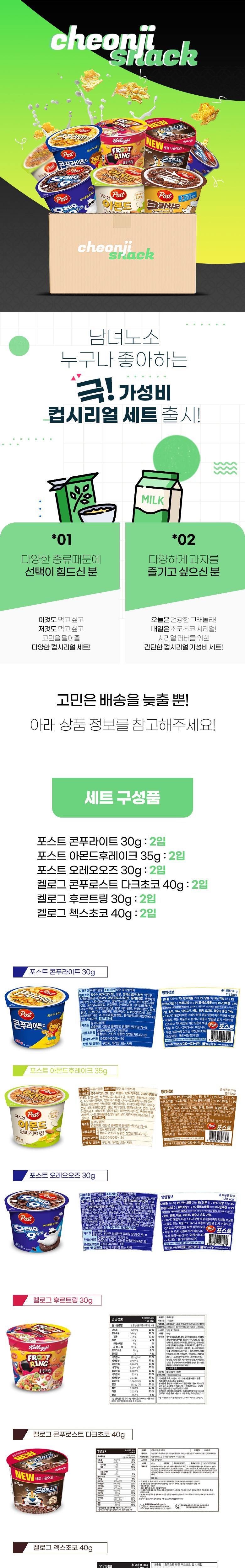 컵시리얼 12개입 (후르트링 2개+콘푸로스트 다크초코 2개+첵스초코 2개+콘푸라이트 2개+아몬드 후레이크 2개+오레오 2개)