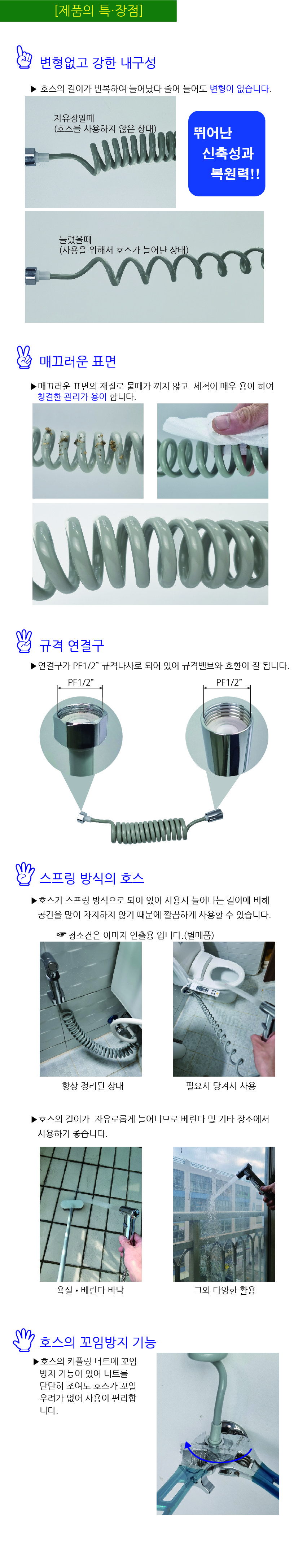 | 품명 및 모델명 | 샬럿11 욕실,베란다 청소 꼬임 방지 스프링 코일 호스 3m | 인증/허가 사항 | 해당없음 |