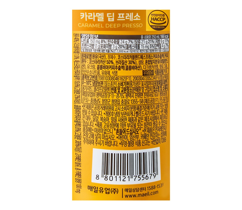 | 제품명 | 바리스타룰스 카라멜딥프레소 | 식품의 유형 | 컨텐츠 참조 |