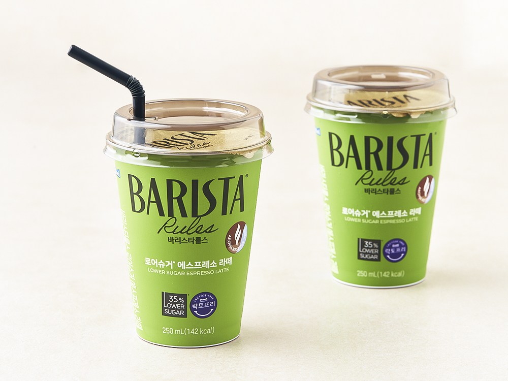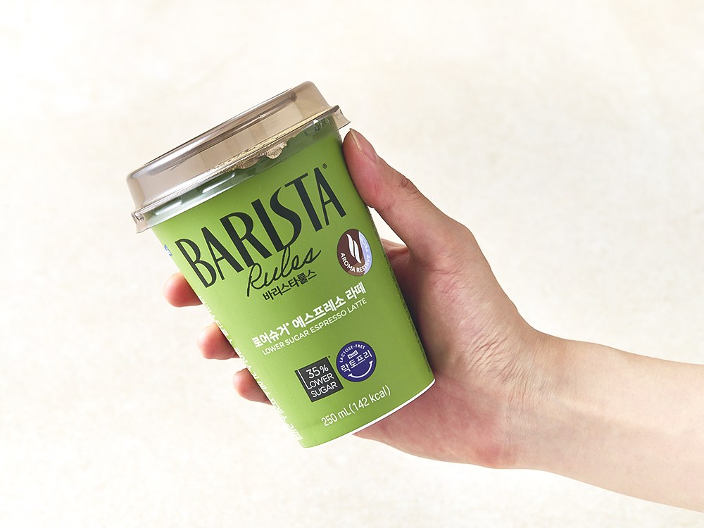 매일유업의 커피 전문 브랜드, 바리스타룰스의 로어슈거 에스프레소 라떼예요. 원두 특성에 맞춰 로스팅하고, 커피를 추출해 균형 잡힌 맛을 자랑하는데요. 락토프리 우유로 깔끔한 맛을 완성했답니다. 컵 옆에 빨대가 부착되어 있으니, 콕 꽂아 즐겨보세요.
