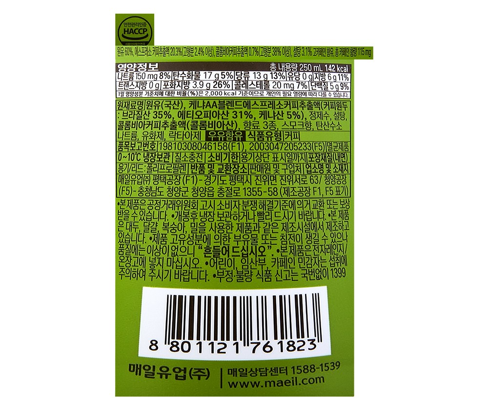 | 제품명 | 바리스타룰스 로어슈거 에스프레소 라떼 | 식품의 유형 | 컨텐츠 참조 |
