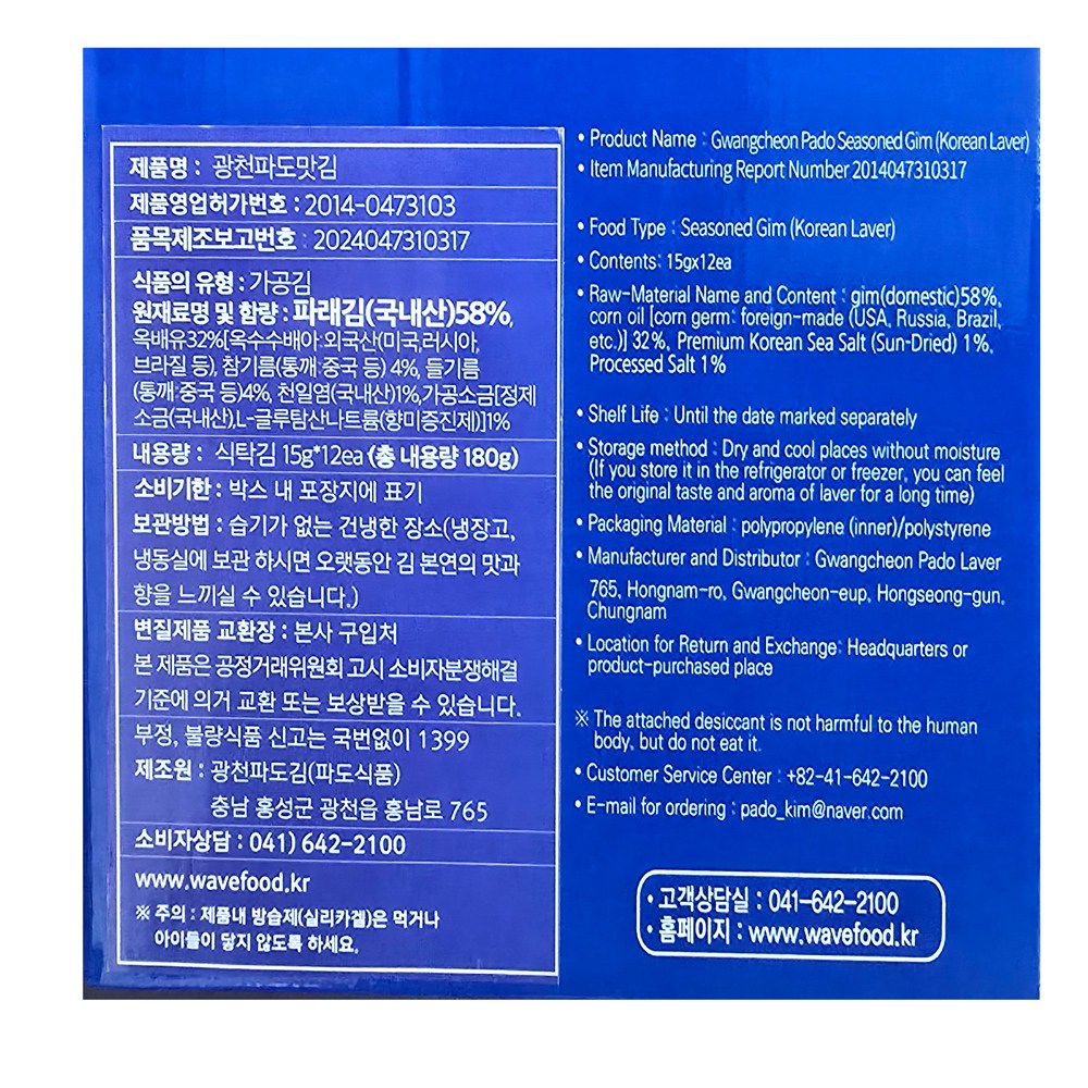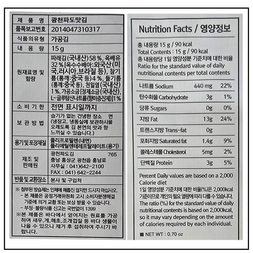 | 포장단위별 내용물의 용량(중량), 수량 | 15g×12개 | 원재료명 및 함량 | 컨텐츠 참조 |