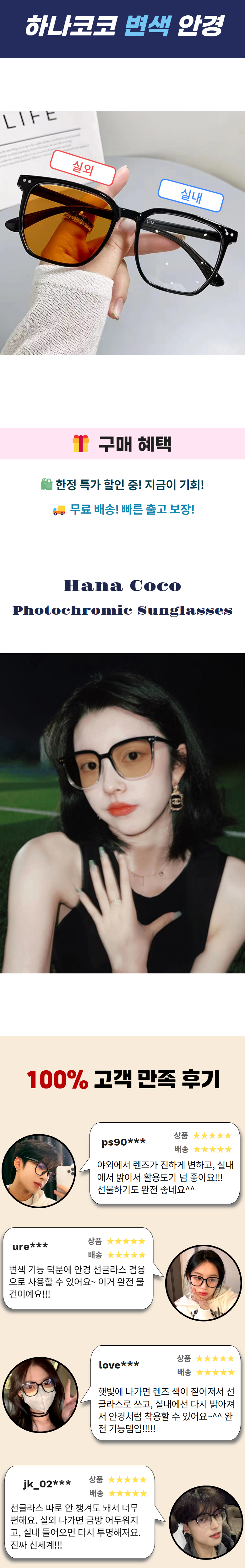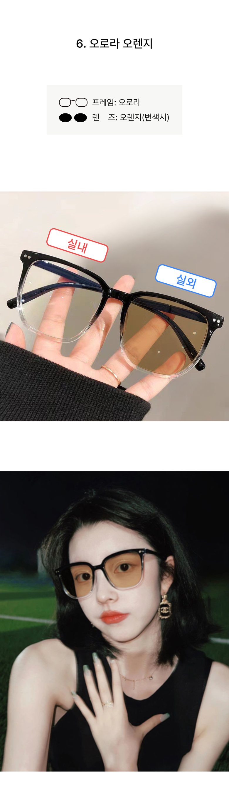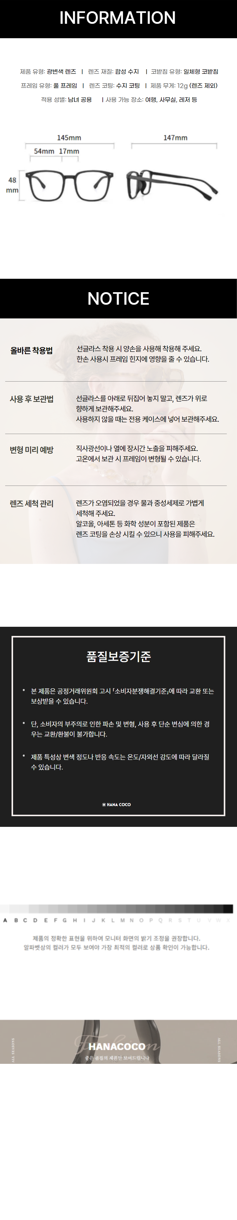 | 종류 | 안경테 + 렌즈 | 소재 | 렌즈 재질 : 합성 수지렌즈 코팅 : 수지 코팅 |