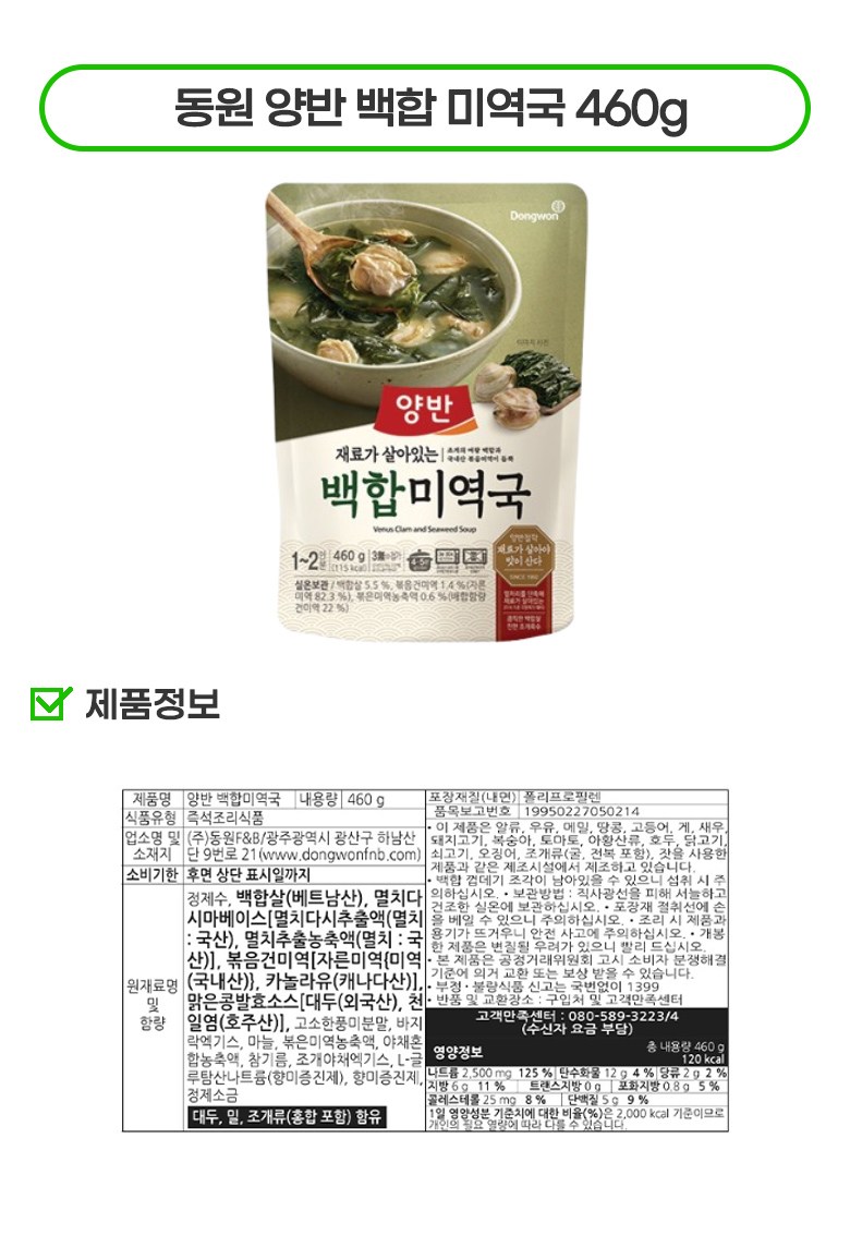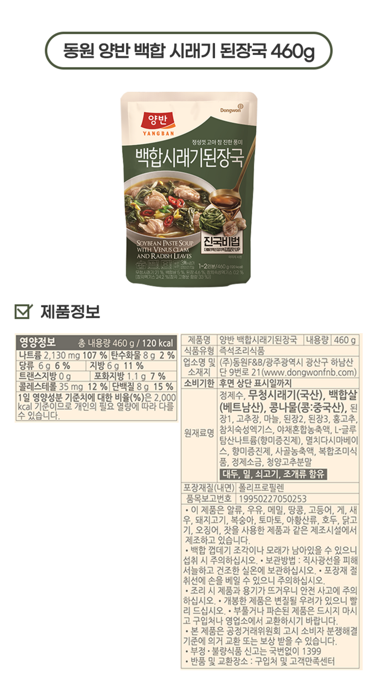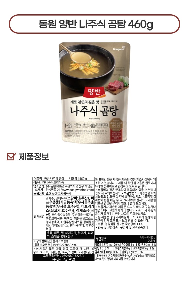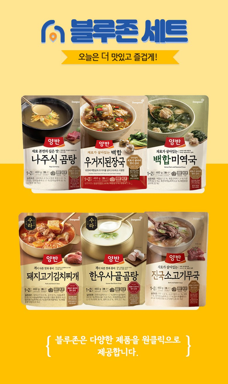 동원 양반 간편식 국탕찌개 6종 460g 나주식 곰탕+백합 우거지 된장국+백합 미역국+수라 돼지고기 김치찌개+수라 한우 사골곰탕+진국 소고기무국