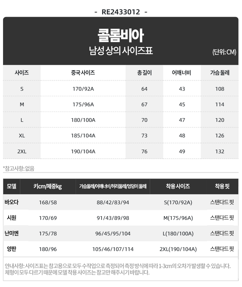 | 치수 | 2XL | 제조자(수입자) | Columbia |