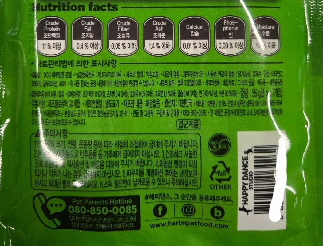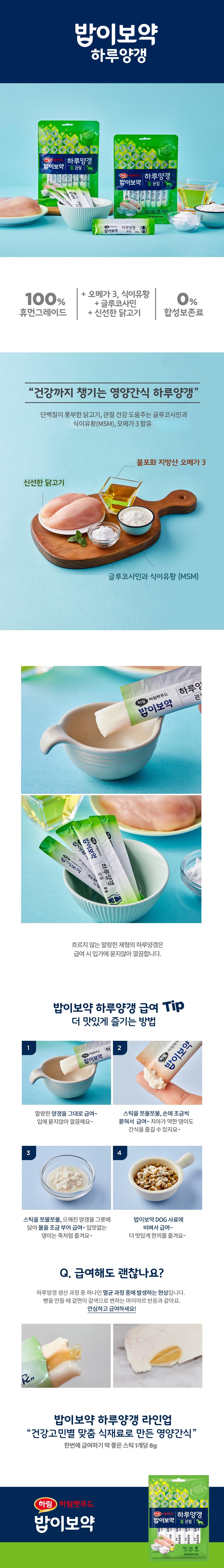 | 품명 및 모델명 | DOG 하루양갱 관절 | 인증/허가 사항 | 사료관리법에 따른 성분등록번호 : 컨텐츠 참조 |
