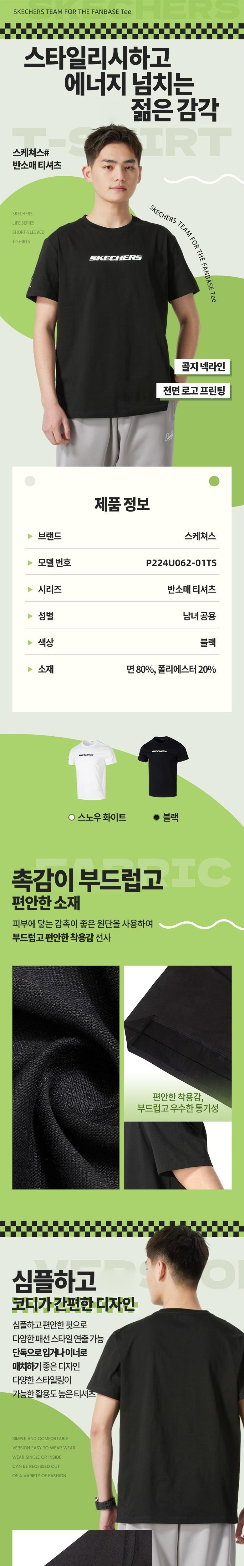 스케쳐스 남녀 공용 스포츠 반소매 로고 티셔츠 P224U042